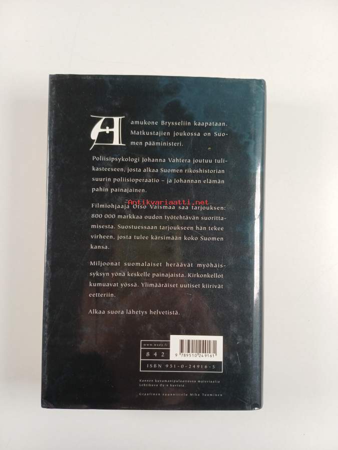 Hyvä. Tarkempi kuntoluokka: K3+ ; Pienoista kolhua kulmissa, pienoista kulumaa kansissa. Kansipaperin kunto: jonkin verran kulumaa/pienoisia repeämiä