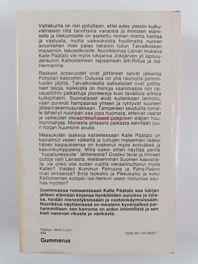 Hyvä. Tarkempi kuntoluokka: K3+ ; Pienoista kolhua selkämyksen päissä, pienoista kulumaa kansissa. Kansipaperin kunto: pientä kulumaa