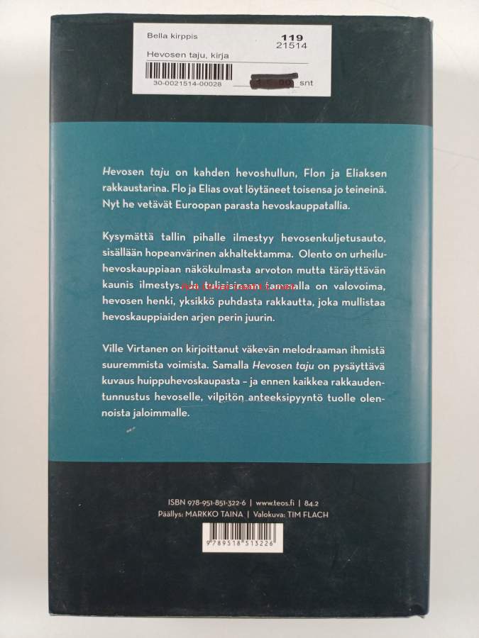 Hyvä. Tarkempi kuntoluokka: K3+ ; Hieman kulumaa kansissa, takana vanha hintalappu, selkämyksessä hieman vinoutta. Kansipaperin kunto: pientä kulumaa