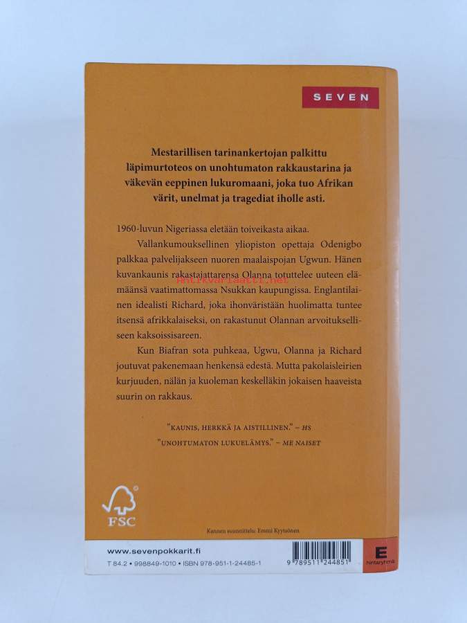 Muu(t) tekijä(t): Sari KarhulahtiMerkinnät: omistajamerkintäSarja: SevenAlkuteos: Half of a yellow sunAsiasanat: Nigeria, Biafra
