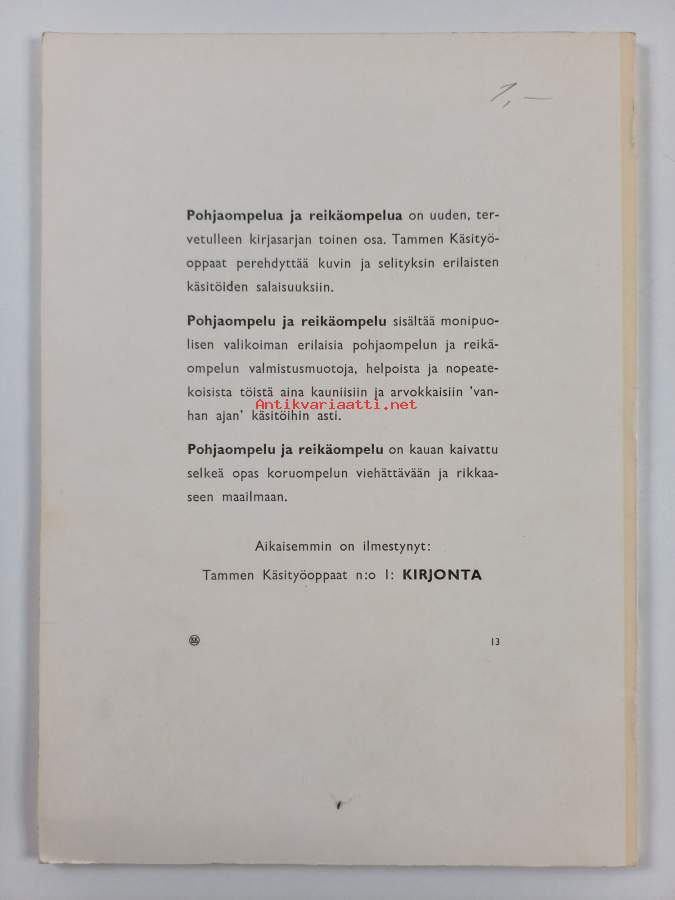 Muu(t) tekijä(t): Raija LahtiSarja: Tammen käsityöoppaat 2Asiasanat: kirjonta, käsityöperinne, ompelutyöt, revinnäistyöt
