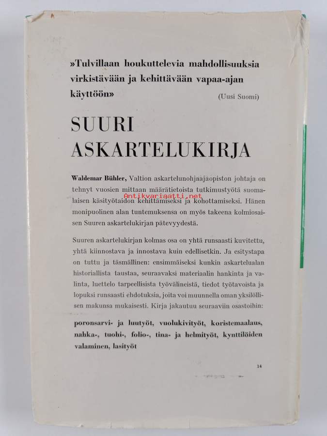 Asiasanat: askartelu, nahkatyöt, korut, lasityöt, naamiot, kynttilät, tuohityöt, tinatyöt, vuolukivi