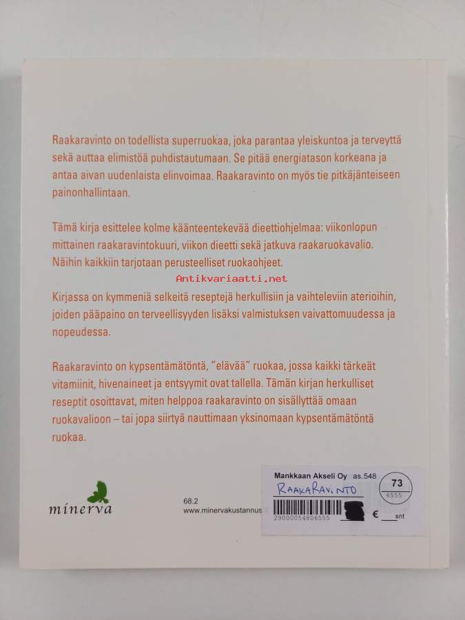 Muu(t) tekijä(t): Anna Maija LuomiAlkuteos: The Raw Food Diet - The Healthy Way to Get the Shape You WantAsiasanat: ruokaohjeet, ruoanvalmistus, terveysvaikutukset, keittokirjat, ruokavaliot, kasvisravinto, kasvisruoat, painonhallinta, raakaravinto