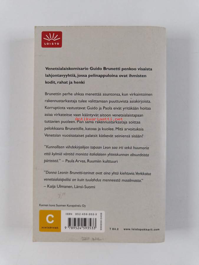 Hyvä. Hieman kulumaa reunoilla ja kulmissa, selkämyksessä hieman vinoutta, selkämyksessä yksi lukutaite
