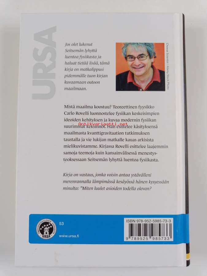 Muu(t) tekijä(t): Tuukka PerhoniemiMerkinnät: omistajamerkintäSarja: Ursan julkaisuja 165Alkuteos: La realtà non è come ci appareAsiasanat: historia, kosmologia, maailmankaikkeus, avaruus, teoriat, fysiikka, aika, suhteellisuusteoria, kvanttimekaniikka, kvanttifysiikka, gravitaatio