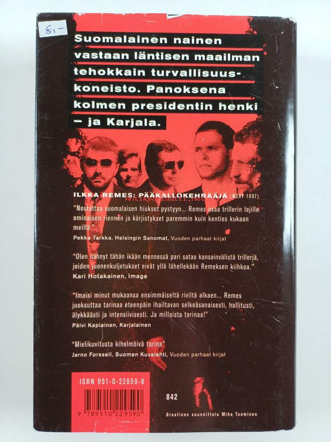 Hyvä. Tarkempi kuntoluokka: K3+ ; Pienoista kolhua reunoilla ja kulmissa, selkämyksessä hieman vinoutta. Kansipaperin kunto: joitain repeämiä/kulumaa