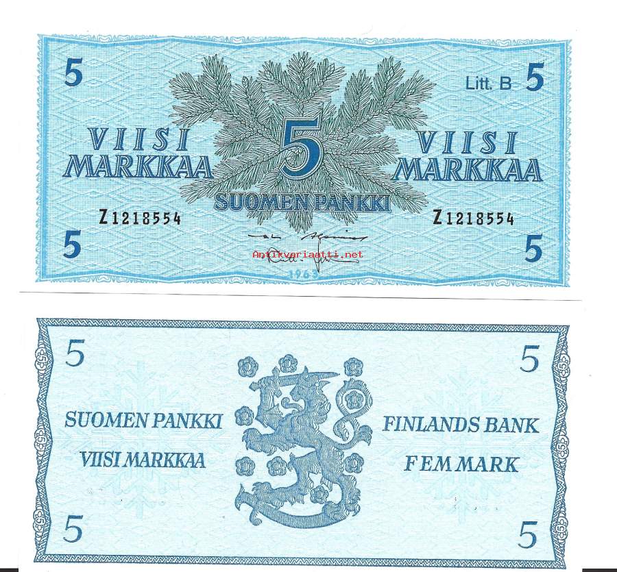 5 markkaa 1963 Litt B suomalainen seteli