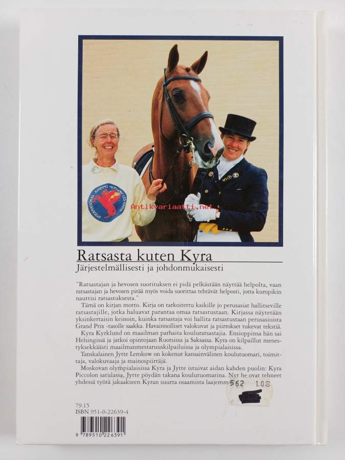 Muu(t) tekijä(t): Ulla (suom.) LindgrenMerkinnät: omistajamerkintä leikattu pois etulehden ylälaidastaAlkuteos: Dressyr med KyraAsiasanat: ratsastus, kouluratsastus