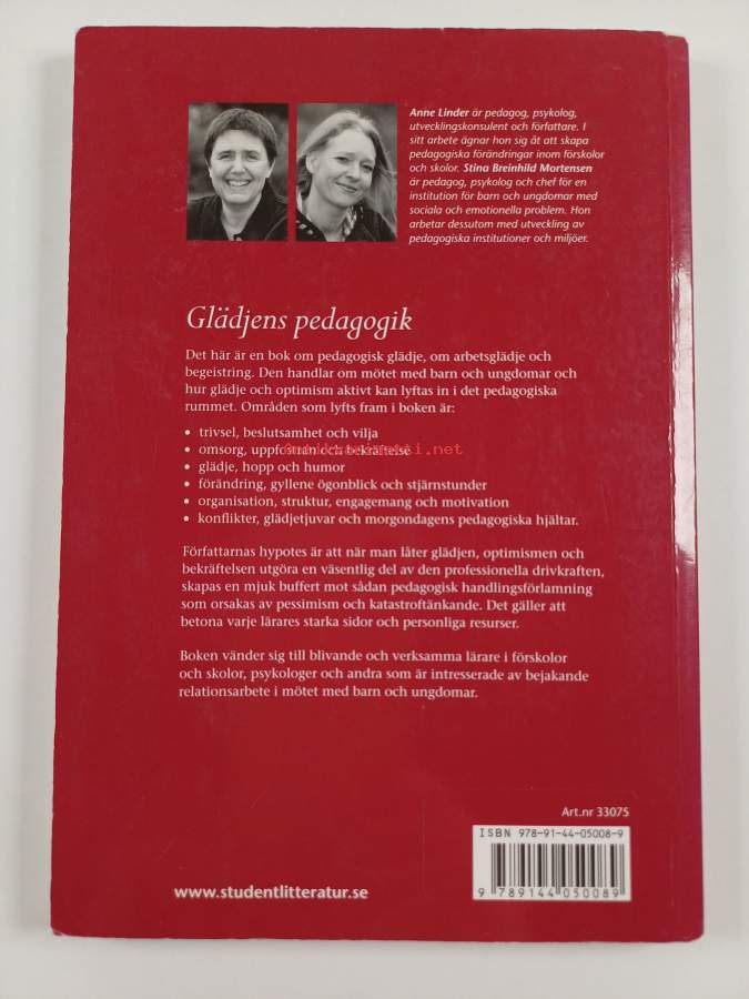 Muu(t) tekijä(t): Inger Lindelöf, Stina Breinhild MortensenAlkuteos: Glædens pædagogikAsiasanat: positiivisuus, optimismi, ilo, opetus, opettajat, kasvatus, professiot, koulut, ammattitaito, pedagogiikka, koulukasvatus, kasvatuspsykologia, pätevyys, professionalismi, fostran, skolan, undervisning, lärare, glädje, fostran i skolan, professionalism, yrkesskicklighet, pedagogik, pedagogisk psykologi, kompetens, positiv attityd, optimism, professioner