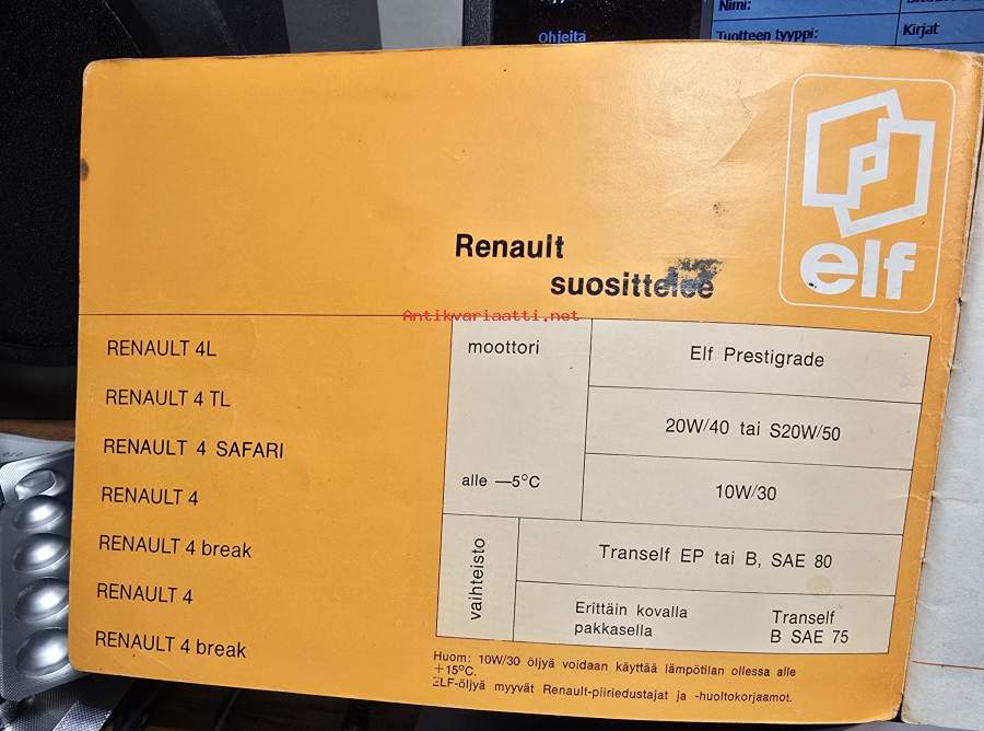 renault 4 käsikirja vuodelta 1976 joulukuu.