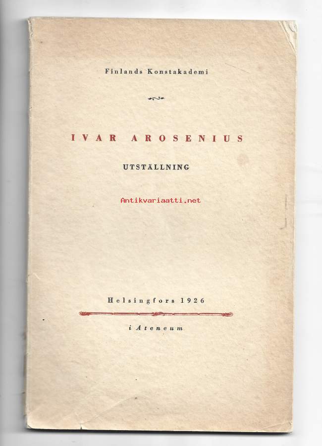 Suomen Taideakatemia Ivar Arosenius Näyttely Helsinki 1926 Ateneum -taidenäyttelyluettelo / art exhibition catalog