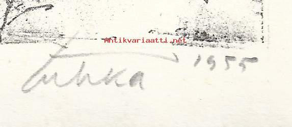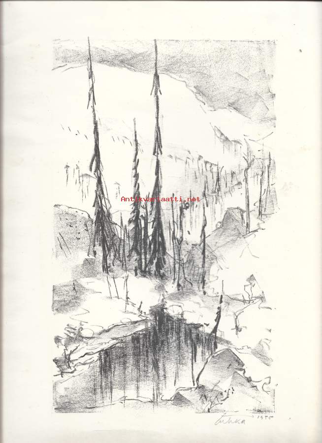 Aukusti Tuhka, Lappi litografia sign 1955, 35x26 cm kehystämätön