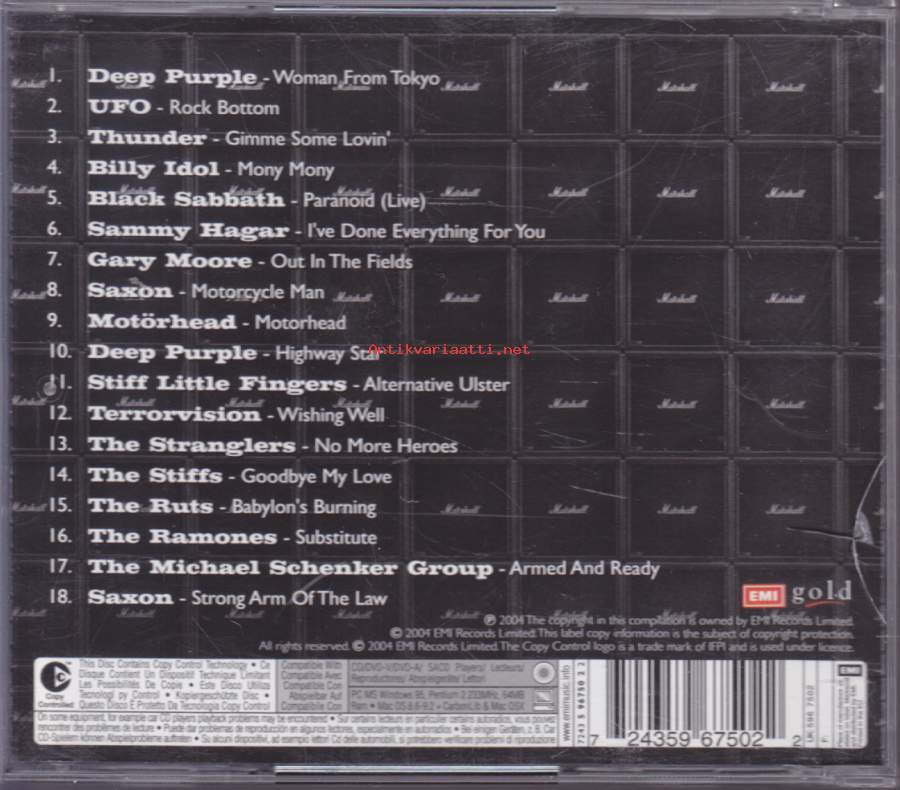 **1 Deep Purple– Woman From Tokyo*2 UFO (5)– Rock Bottom*3 Thunder (3)– Gimme Some Lovin'*4 Billy Idol– Mony Mony*5 Black Sabbath– Paranoid (Live)*6 Sammy Hagar– I've Done Everything For You*7 Gary Moore– Out In The Fields*8 Saxon– Motorcycle Man*9 Motörhead– Motorhead*10 Deep Purple– Highway Star*11 Stiff Little Fingers– Alternative Ulster*12 Terrorvision– Wishing Well*13 The Stooges– No More Heroes*14 The Stiffs (2)– Goodbye My Love*15 The Ruts– Babylon's Burning*16 Ramones– Substitute*17 The Michael Schenker Group– Armed And Ready*18 Saxon– Strong Arm Of The Law