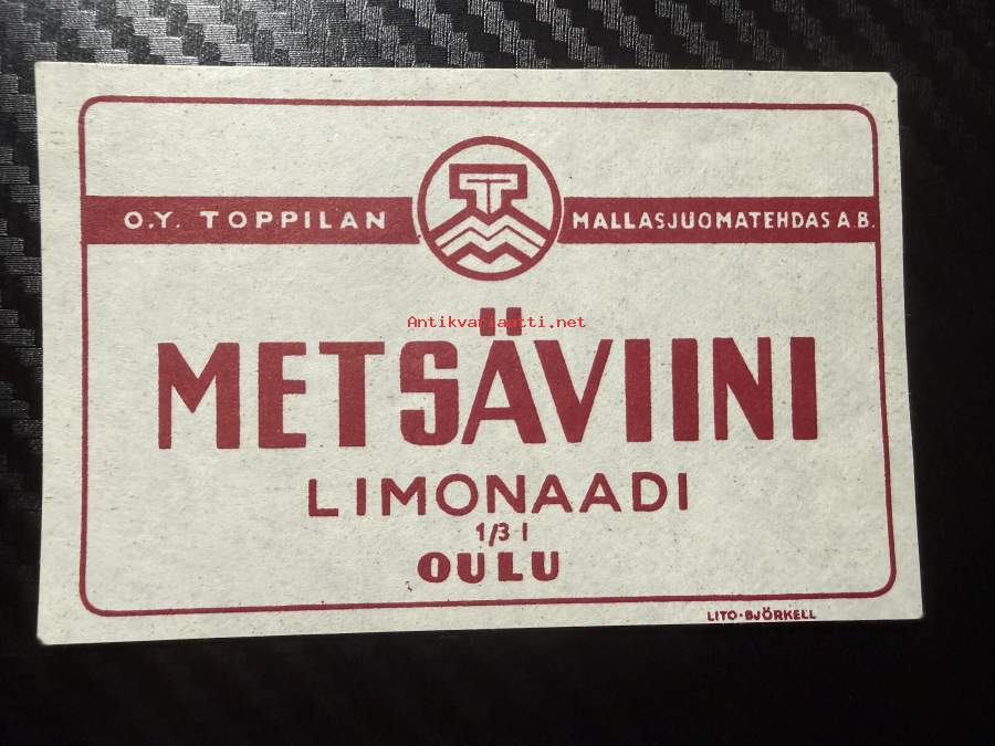 Ananas, Metsäviini, Sitruunasoodaa, Vichy ja Vadelma - juomaetiketti 5 kpl