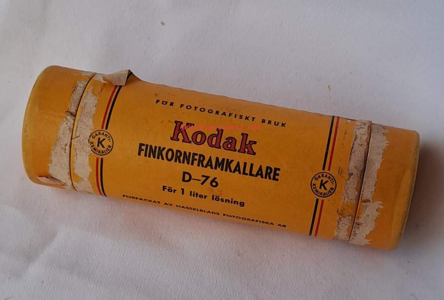Kodak finkornframkallare D-76 tyhjä tuotepakkaus pahvia 13x4 cm