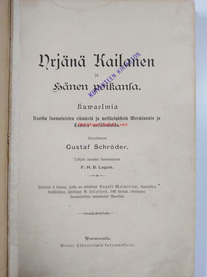 Tyydyttävä. Hieman repeämää kansissa, selkämyksessä hieman vinoutta. teksti fraktuuraa ; esiösivulle liimattu paperilappu