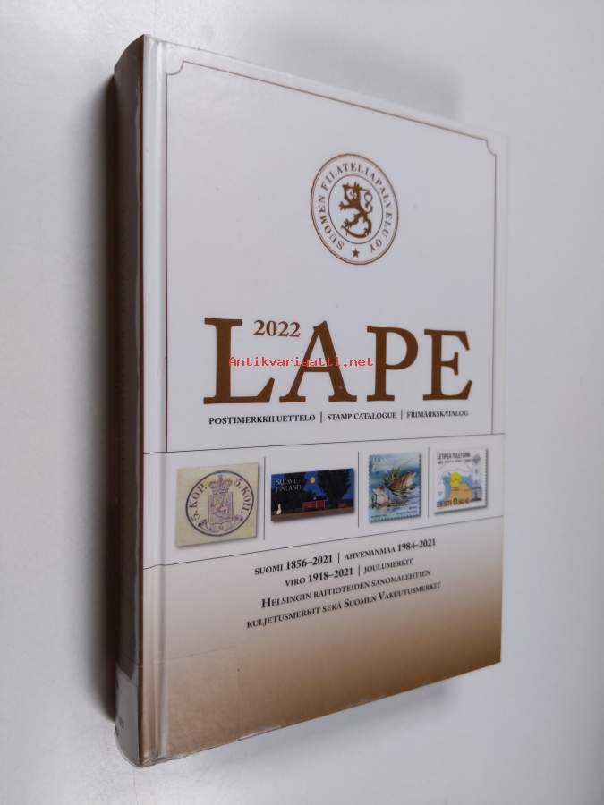 Koko nimi: Lape 2022 : Suomi - Finland 1856-2021: Viro 1918-2021 : Helsingin raitioteiden sanomalehtien kuljetusmerkit sekä Suomen vakuutusmerkit : postimerkkiluettelo = stamp catalogue = frimärkskatalog - Suomi - Finland 1856-2021 - Viro 1918-2021 - Helsingin raitiMerkinnät: omistajamerkintä (leima)Asiasanat: keräily, postimerkit, filatelia, postileimat, frimärken