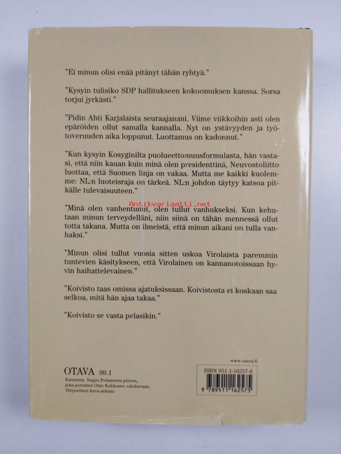 Urho Kekkonen-sarja (7 kirjaa) : Urho Kekkonen 1936-1944 Myrrysmies ; Urho Kekkonen 1944-1950 Vonkamies ; Kuningastie ; Presidentti ; Taistelu puolueettomuudesta ...