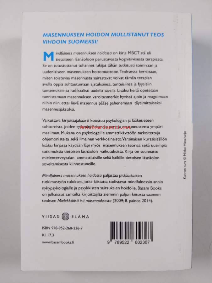 Sarja: Viisas elämäAlkuteos: Mindfulness-based cognitive therapy for depressionAsiasanat: hoitomenetelmät, masennus, kognitiivinen terapia, tietoinen läsnäolo