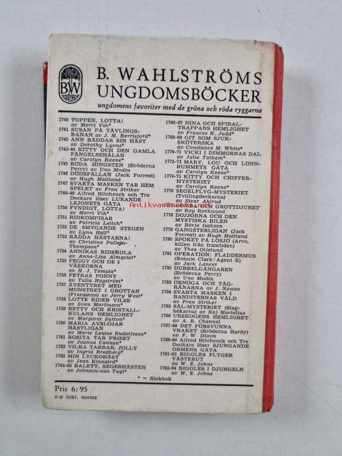 Merkinnät: omistajamerkintäSarja: Mary, Lou-serien 18Alkuteos: Mystery at the CrossroadsAsiasanat: barnlitteratur, ungdomslitteratur, serieberättelser, detektivlitteratur, ödestugor, gömställen