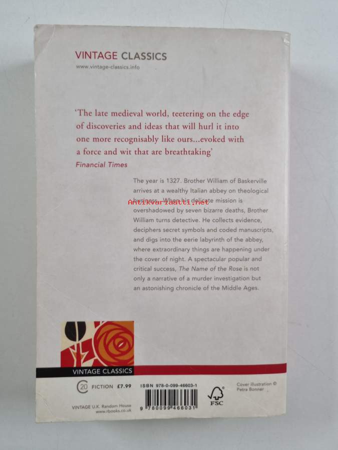 Muu(t) tekijä(t): William WeaverMerkinnät: omistajamerkintäSarja: Vintage ClassicsAlkuteos: Il nome della roseAsiasanat: keskiaika, munkit, luostarit, munkit (uskonto)