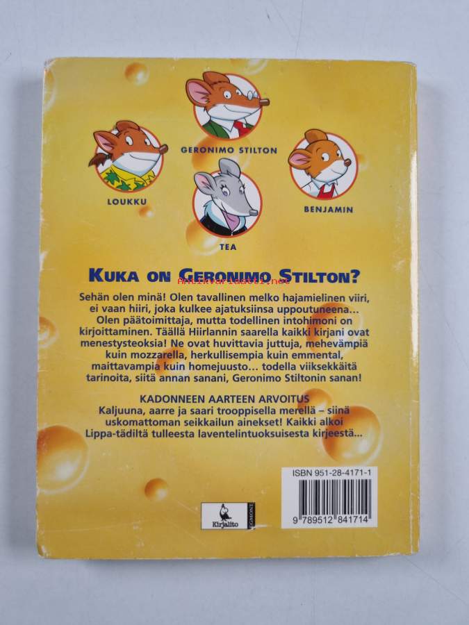 Muu(t) tekijä(t): Kirsi Rasimus, Larry KeysSarja: Geronimo Stilton 7Alkuteos: Il mistero del tesoro scomparsoAsiasanat: lastenkirjallisuus, huumori, merenkulku, hiiret, saaret, seikkailukirjallisuus, aarteenetsintä