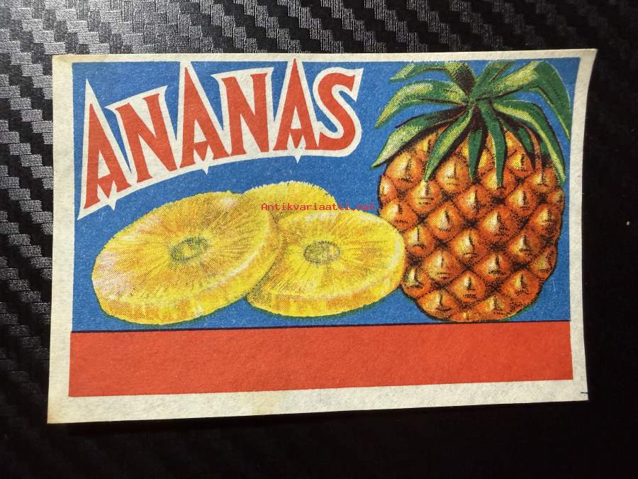 Ananas - Työväen Virvoitusjuomatehdas Oy, juomaetiketti