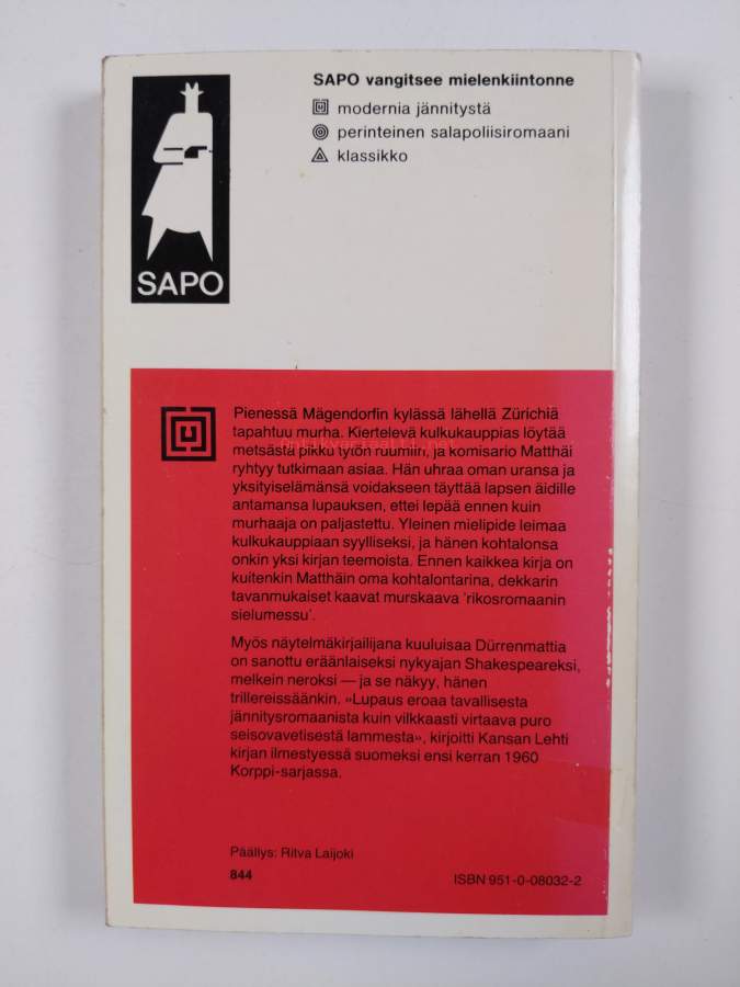 Muu(t) tekijä(t): Eero AhmavaaraSarja: Sapo 206Alkuteos: Das Versprechen
