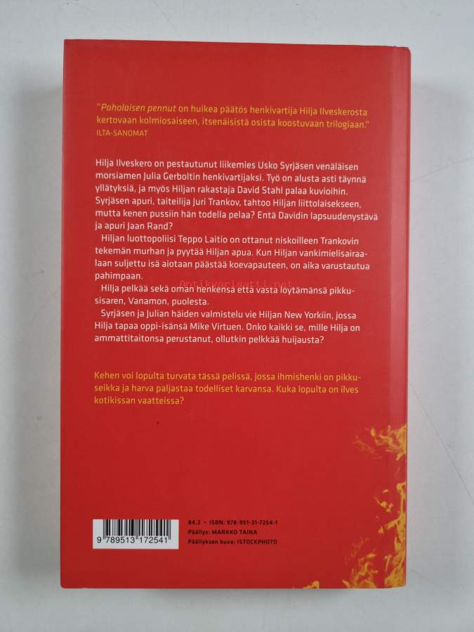 Paholaisen pennut, 2012. Huikea päätös henkivartija Hilja Ilveskerosta kertovaan itsenäiseen trilogiaan.