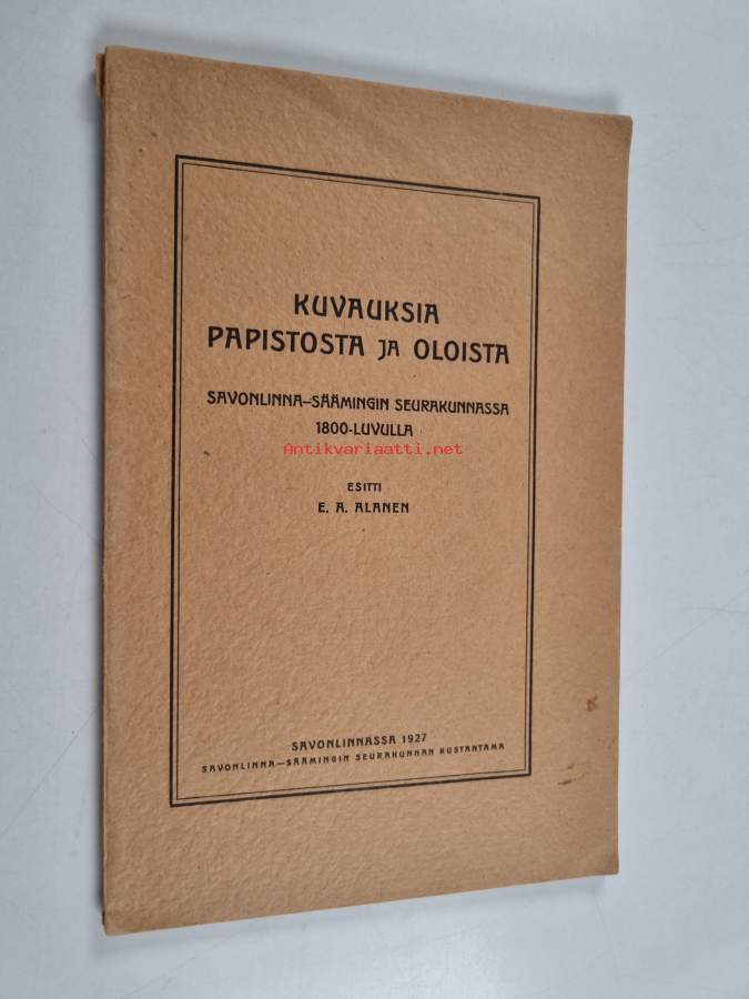 Kuvauksia papistosta ja oloista Savonlinna-Säämingin seurakunnassa 1800-luvulla (tekijän omiste)