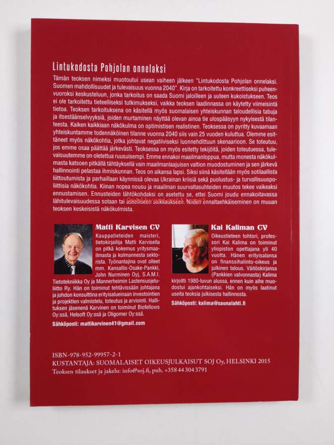Lintukodosta Pohjolan onnelaksi : Suomen mahdollisuudet ja tulevaisuus 2040 (signeerattu, tekijän omiste)