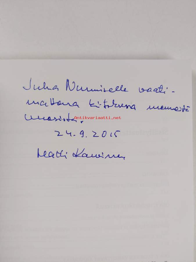 Hyvä. Tarkempi kuntoluokka: K3+ ; Hieman käytön jälkeä kansissa, selkämyksessä aavistus vinoutta