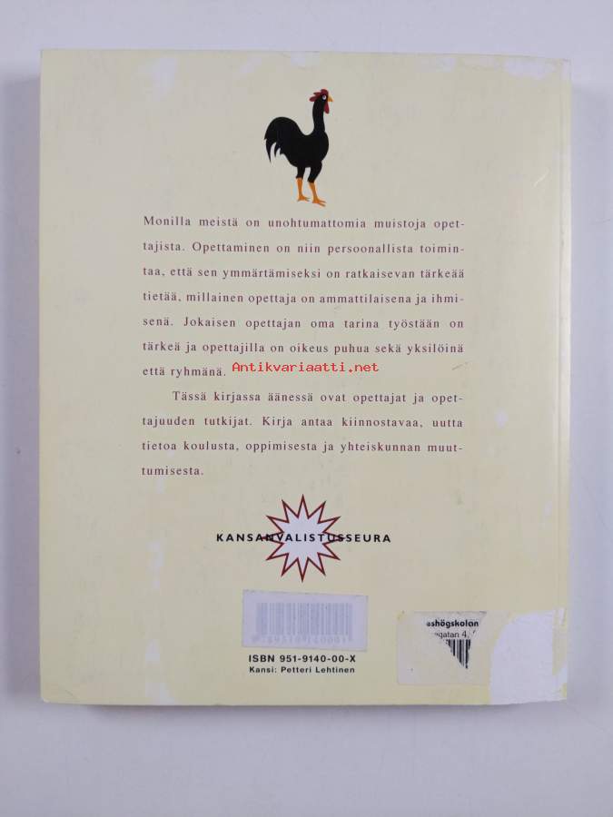 Muu(t) tekijä(t): Leena Syrjälä, Hannu L. T. HeikkinenMerkinnät: omistajamerkintä (leima)Asiasanat: elämäkerrat, musiikki, päiväkirjat, tarinat, yhteiskunnallinen muutos, identiteetti, ammatillinen kehitys, opetus, opettajat, elämäkertatutkimus, koulut, opiskelijat, portfoliot, ammattikuva, opettajankoulutus, ammatti-identiteetti, narratiivisuus, kertomukset, opettajuus, opettajankoulutuslaitokset, kutsumus