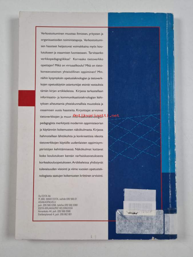 Muu(t) tekijä(t): Erno LehtinenMerkinnät: omistajamerkintä (leima)Asiasanat: tietoliikenneverkot, Internet, koulutus, tietotekniikka, tietoyhteiskunta, yhteiskunnallinen muutos, opetus, tietoverkot, WWW, sähköposti, atk, oppiminen, koulut, ammattikieli, oppimisympäristö, opetusteknologia, tietokoneavusteinen opetus, korkeakouluopiskelu, tietojärjestelmät, verkko-opetus, verkkopedagogiikka, verkko-oppiminen, verkkokurssit, etäopetus, Education, inlärning, nätundervisning, utbildning, undervisning, Learning, samhällsförändring, Information Systems, informationsteknik, informationssystem, teaching, inlärningsmiljö, datorstödd undervisning, computer assisted instruction, högskolestudier, datanät, informationssamhälle, skolor (läroanstalter), pedagogik, undervisningsteknologi, distansundervisning, nätkurser, e-lärande, telekommunikationsnät, e-post, Computer Communication Networks, adb, virtuaalikoulut, fackspråk, nätpedagogik, virtuella skolor