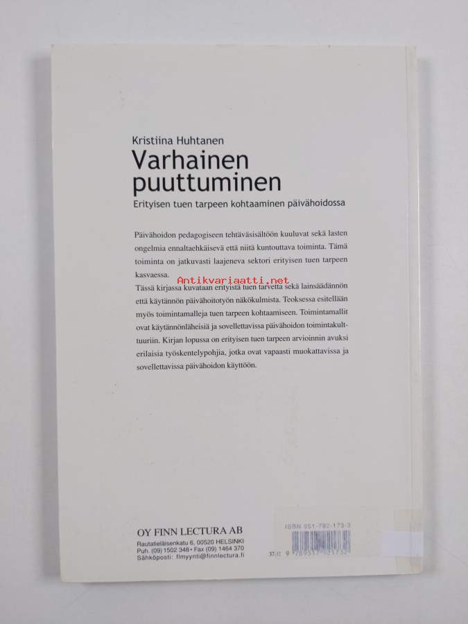 Merkinnät: omistajamerkintä (leima)Asiasanat: ennaltaehkäisy, tukimuodot, lastensuojelu, erityisryhmät, käyttäytymishäiriöt, vanhemmat, yhteistyö, poikkeava käyttäytyminen, päivähoito, varhaiskasvatus, päiväkodit, erityiskasvatus, varhainen puuttuminen, tukeminen, erilaisuus, kehityshäiriöt, perhetyö, kielelliset häiriöt, moniammatillisuus, erityispäivähoito, lapset (ikäryhmät), ongelmakäyttäytyminen, varhainen tuki