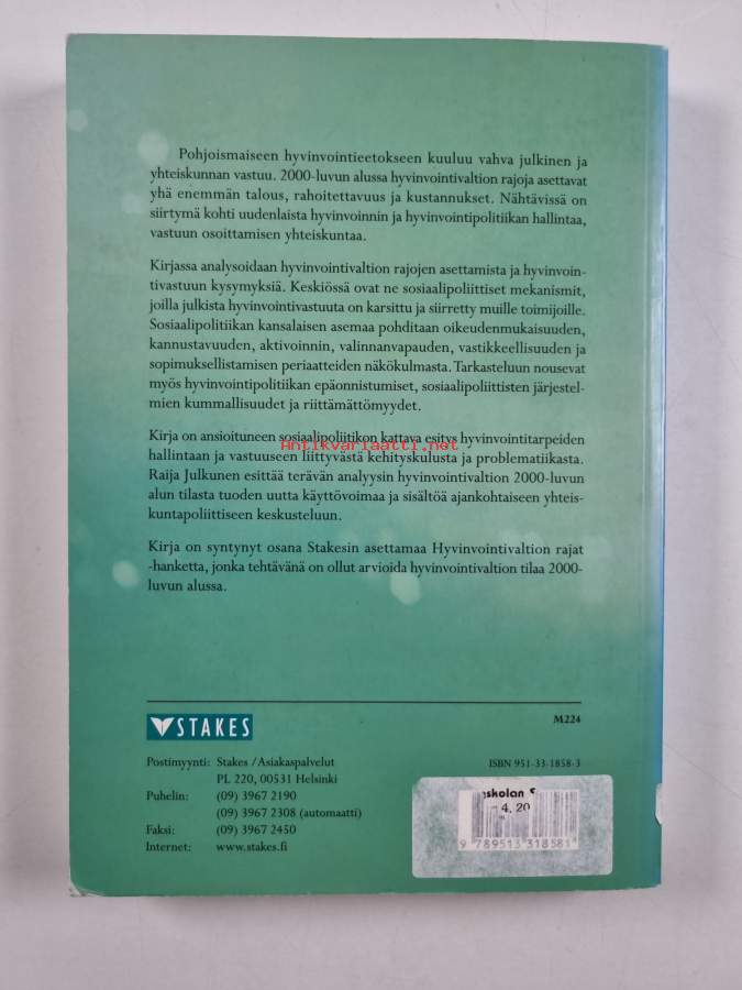 Merkinnät: omistajamerkintä (leima)Asiasanat: hyvinvointivaltio, sosiaalipolitiikka, rahoitus, yhteiskuntavastuu