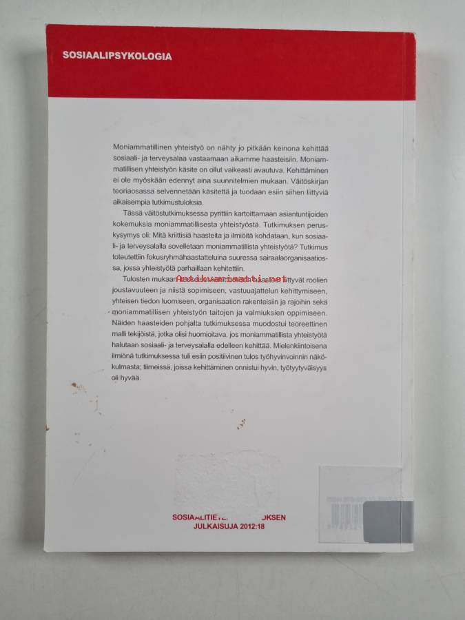 Merkinnät: omistajamerkintä (leima)Sarja: Sosiaalitieteiden laitoksen julkaisuja 2012:18Asiasanat: organisaatio, kvalitatiivinen tutkimus, organisaatiokulttuuri, asiantuntijuus