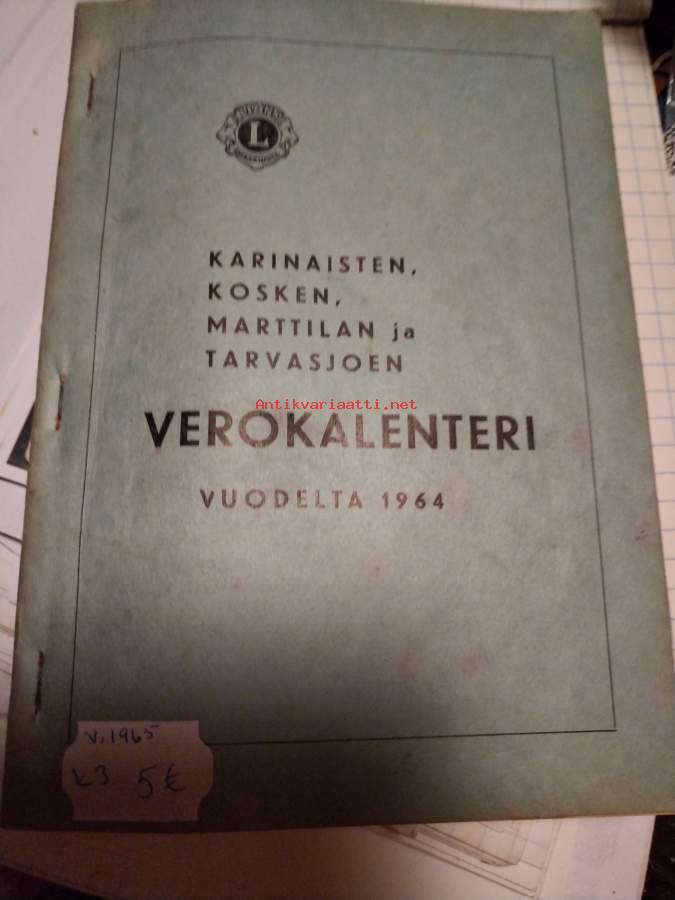 Karinaisten, Kosken, Marttilan ja Tarvasjoen Verokalenteri v. 1964