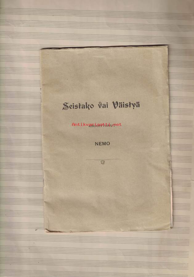Seistako vai väistyä / kirjoittanut Nemo. (sortokausi)