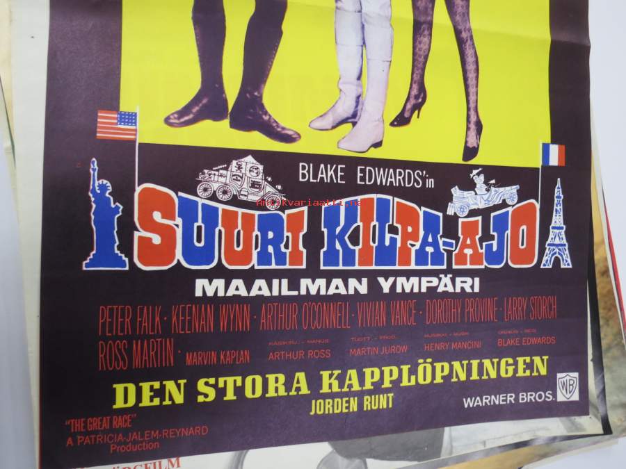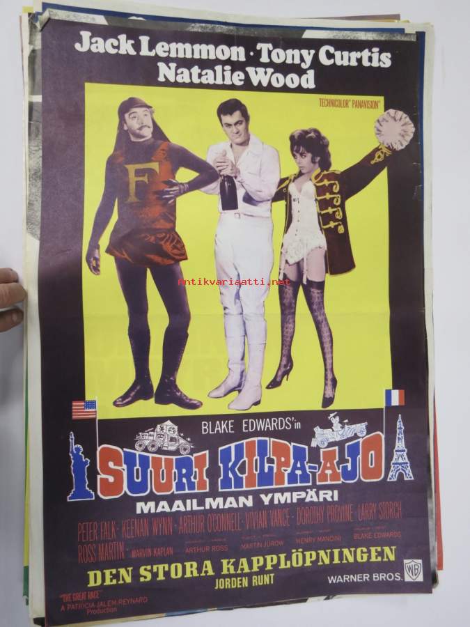 Suuri kilpa-ajao maailman ympäri, pääosissa Jack Lemmon, Tony Curtis, Natalie Wood -elokuvajuliste