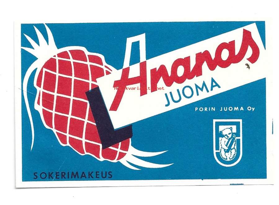 Ananas juoma, Porin Juoma Oy, Pori -juomaetiketti
