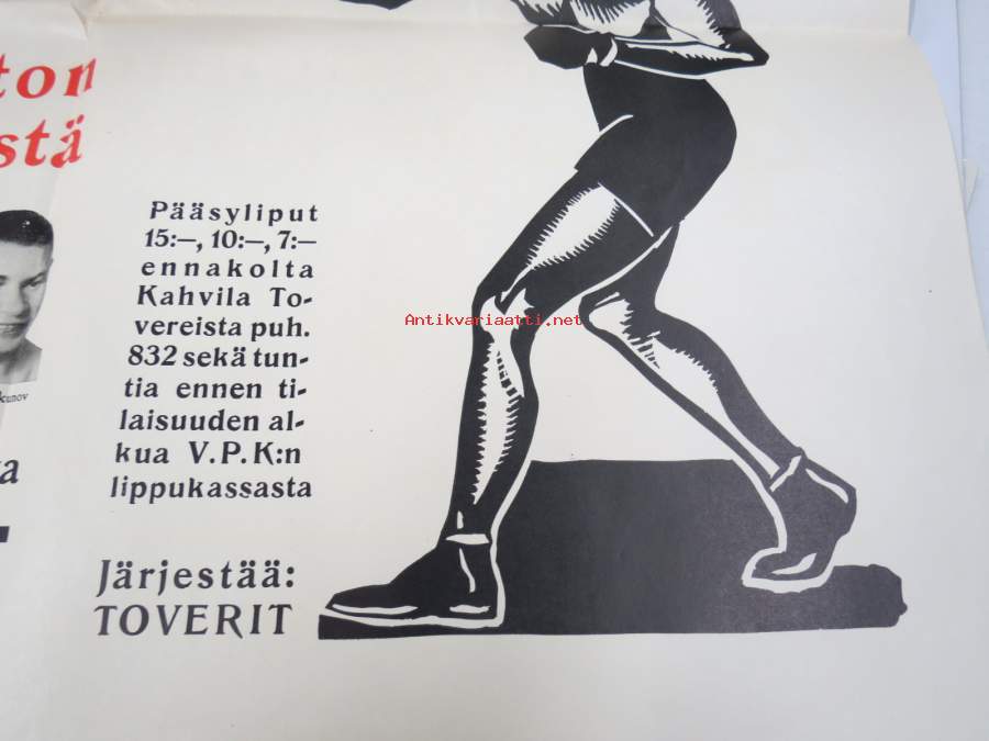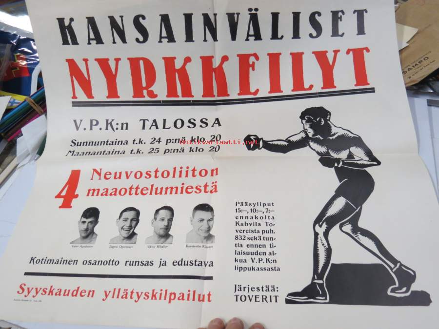 Kansainväliset nyrkkeilyt VPK:n talossa 1935 (Turku) mukana 4 Neuvostoliiton maaottelumiestä Valeri Agadsanov, Eugeni ogurenkov, Viktor Mihailov, Konstantin Rikunov