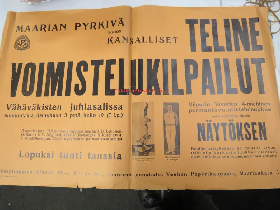 Maarian Pyrkivä - Telinevoimistelukilpailut 1935 Vähäväkisten juhlasalissa, mukana Vipurin Toverti permantovoimistelunäytös