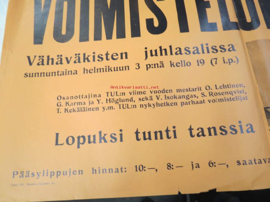 Mukana mm. O. Lehtinen, G. Karma, Y. Höglund, V. Isokangas, S. Rosenqvist, T. Kekäläinen, 50 x 60 cm juliste.