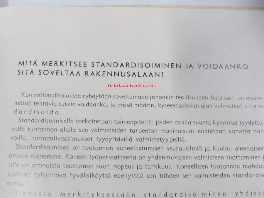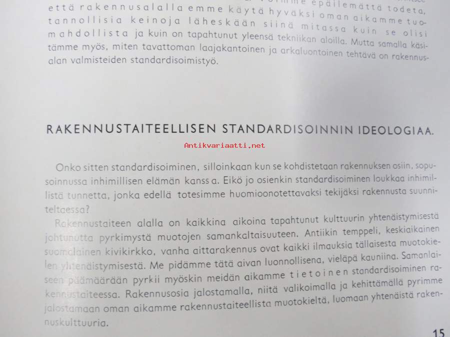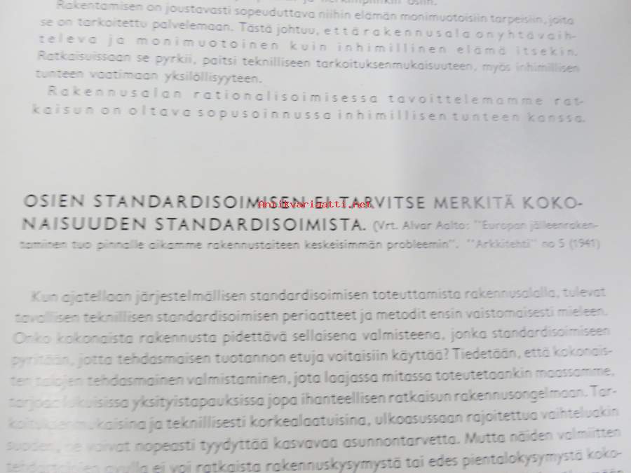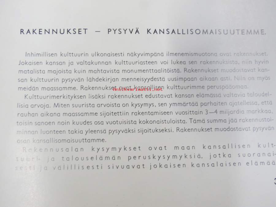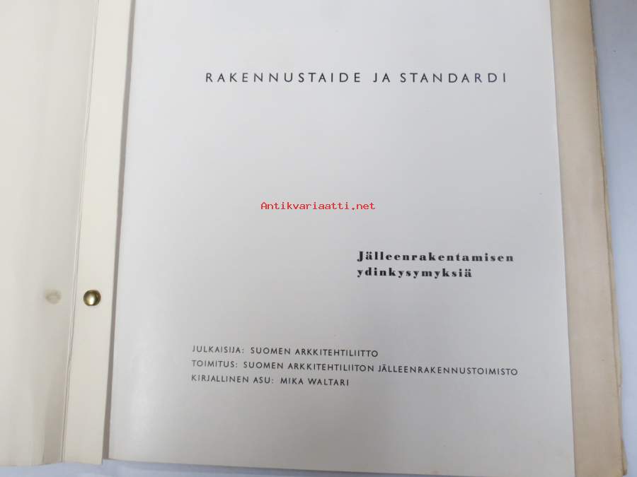 Rakennustaide ja standardi - Jälleenrakentamisen ydinkysymyksiä - Suomen Arkkitehtiliitto, kirjallinen asu: Mika Waltari, erittäin harvinainen