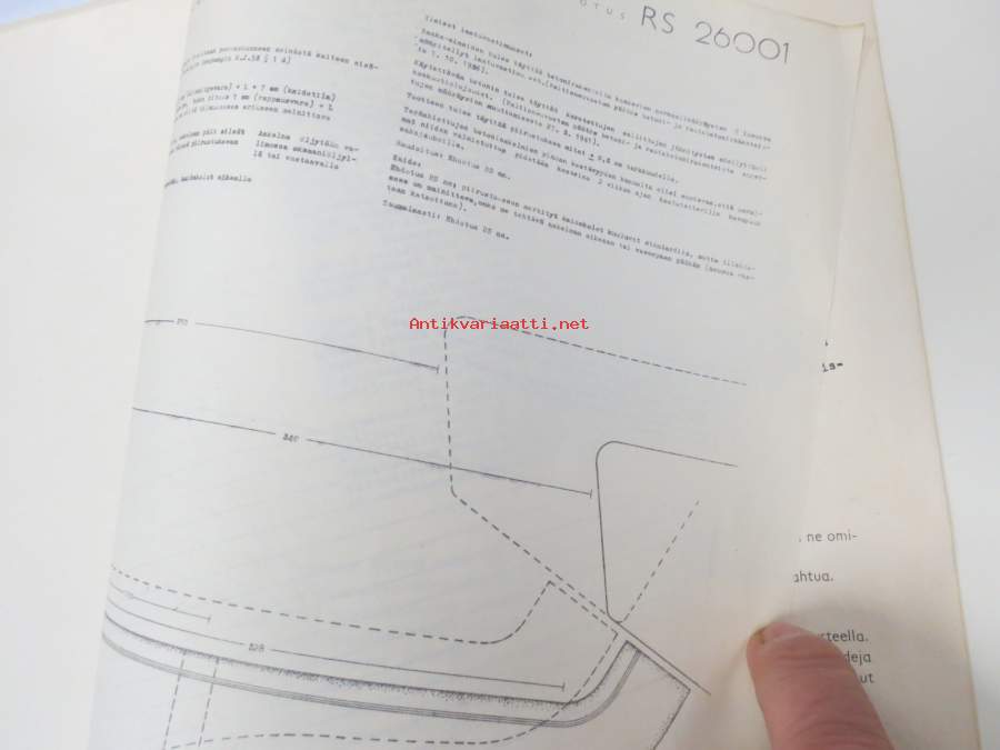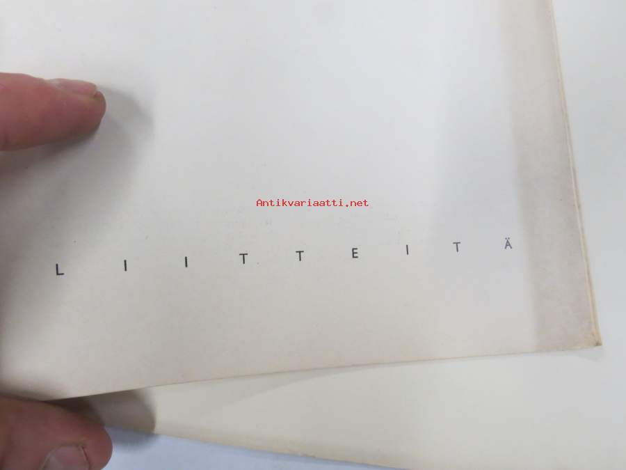 24 x 30 cm, liitteet tallella (liitesivuja on 7 kpl, joista varsinaisia liitteitä 6 kpl), harvinainen, ei saa sotkea vuoden 1982 näköispainokseen.