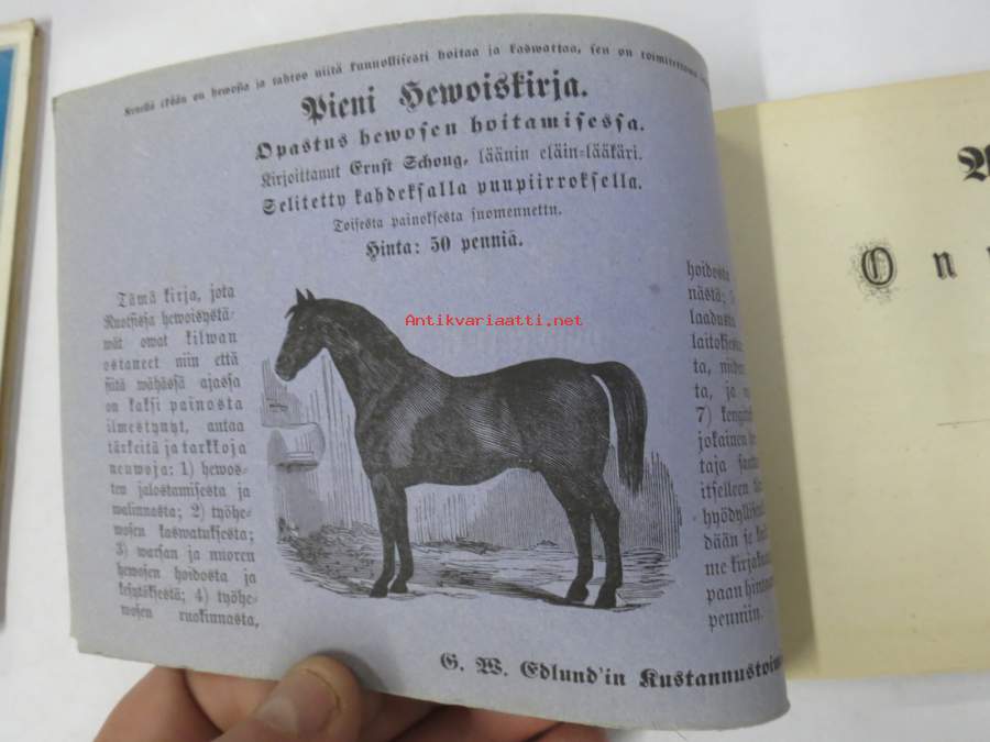 12 x 18 cm, 3. painos 1876, ikäisekseen hyväkuntoinen, kaikki sivut tallella, kustantajan saatavilla olevien teosten luettelo omana sivunaan, kansissa kuvallisia mainoksia.