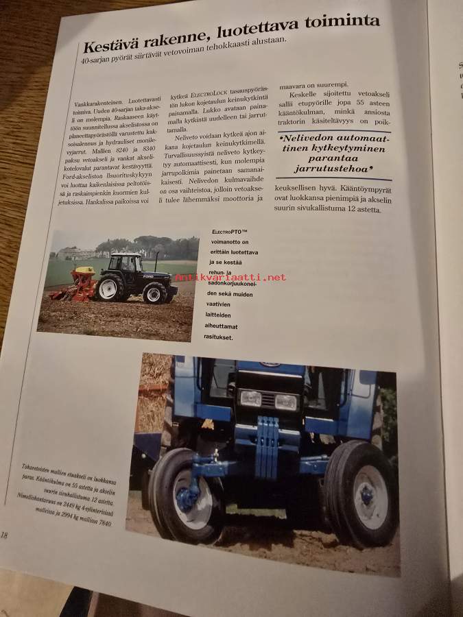 Ford / New Holland 40-sarjan 75-120 hv traktori mallit 5640, 6640, 7740, 7840, 8240, 8340 -myyntiesite / tractor sales brochure, in finnish