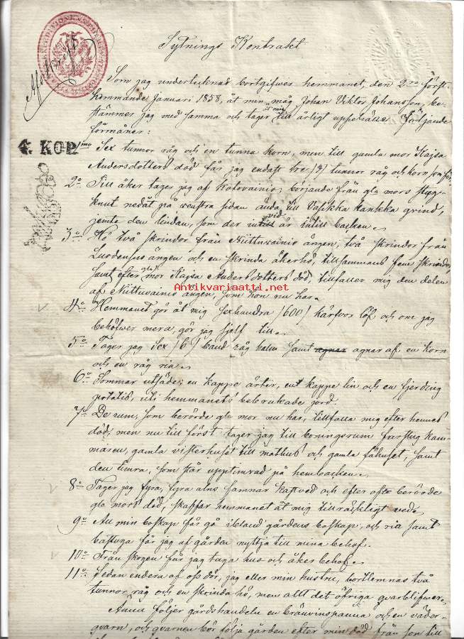 Veroleimapaperi 50 kop kohopainoleima Kamreeri Carl Johan Lannér, kontrollileima m 1845 punainen Vesileimapaperi JU (Juvankoski ) Åbo 1851 asiakirja