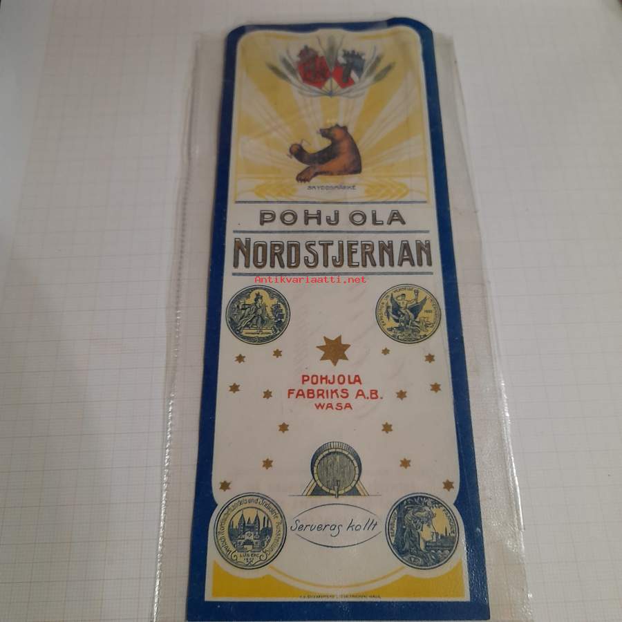 Pohjolan Kauraviinaa - viinaetiketti ( kivipaino )